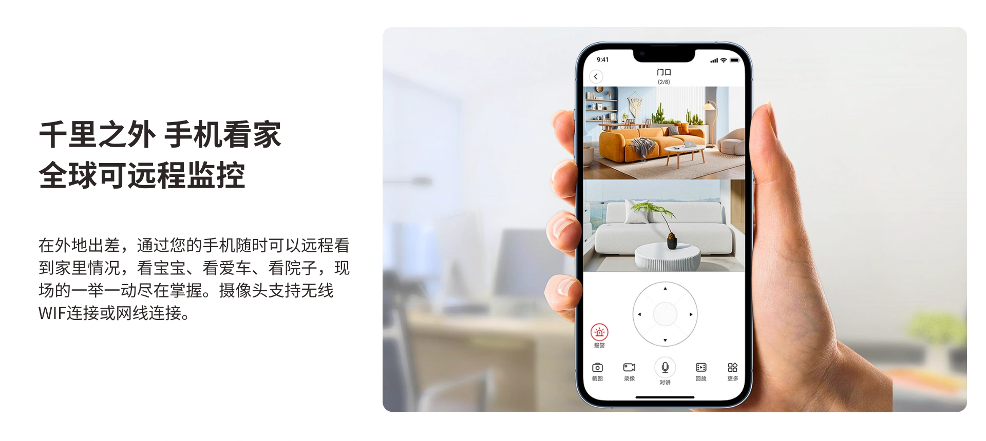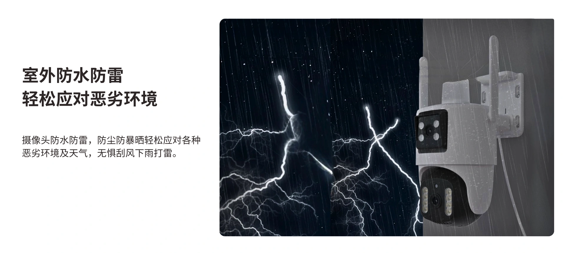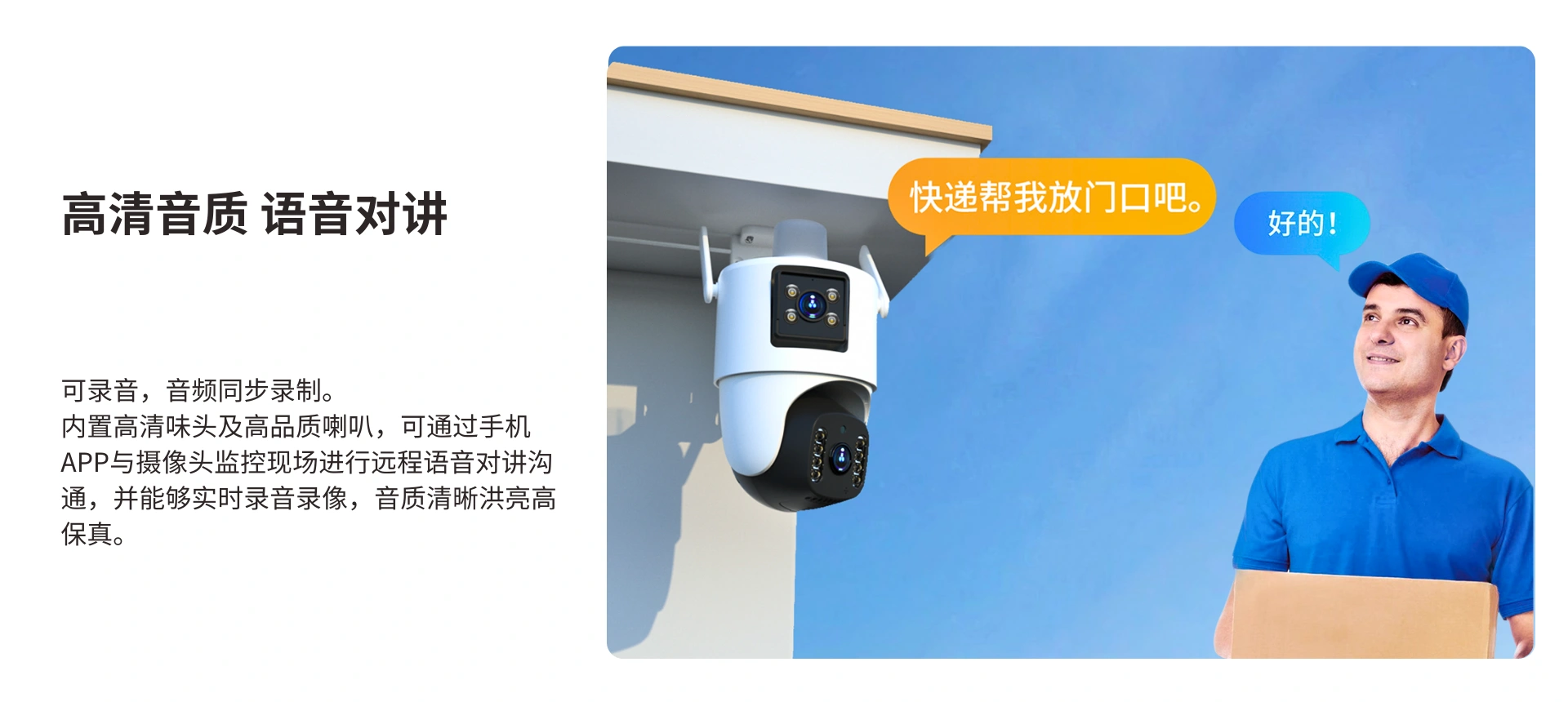 户外360°看护,10倍变焦,人形侦测。400W高清画质细腻,细节放大也能呈现足够精彩,一动一静,360°全景视野。