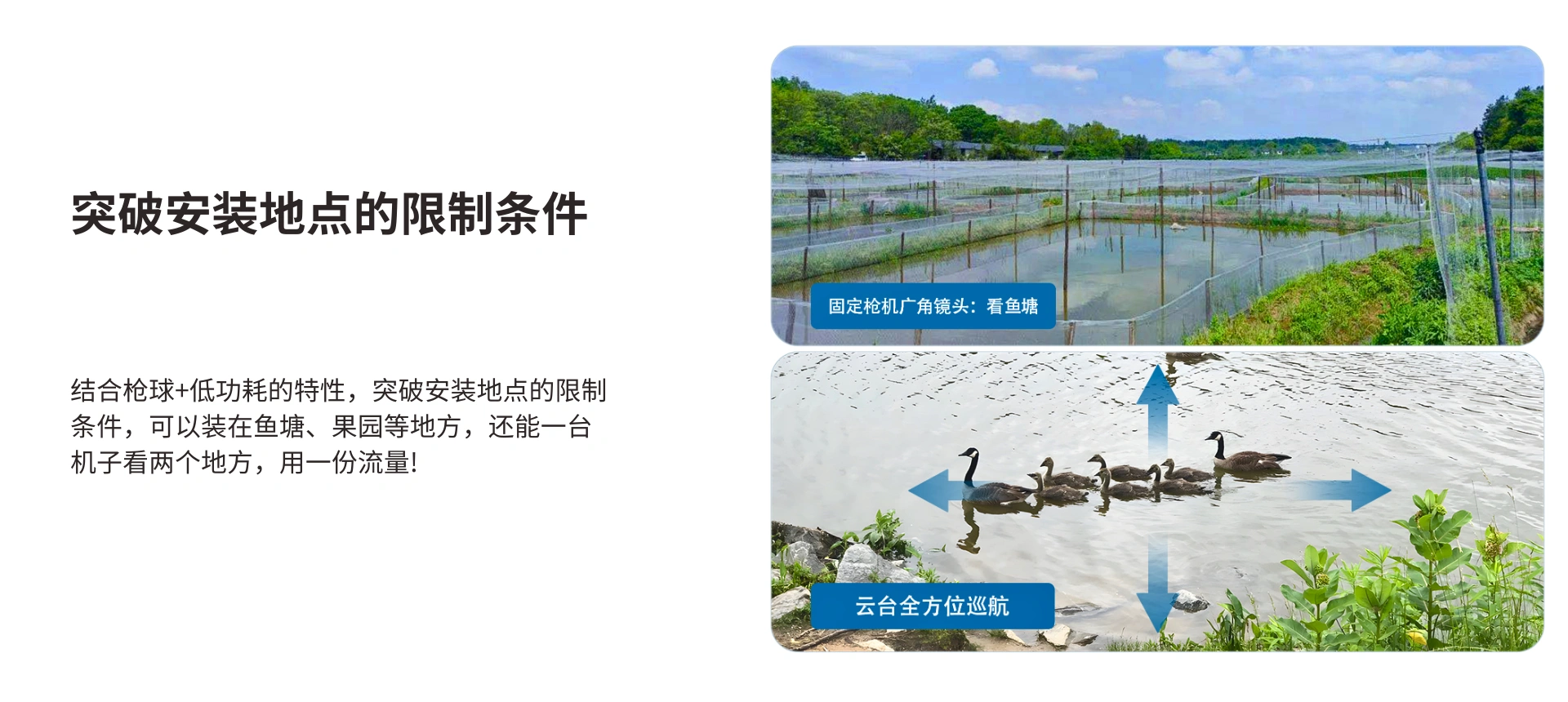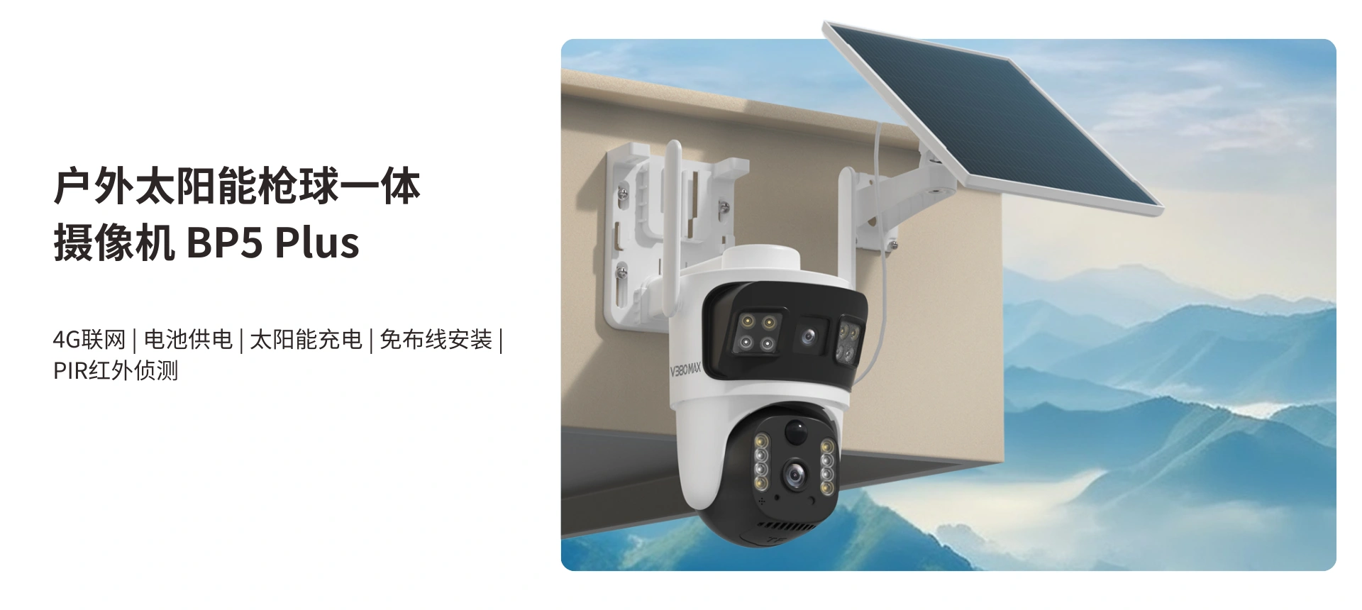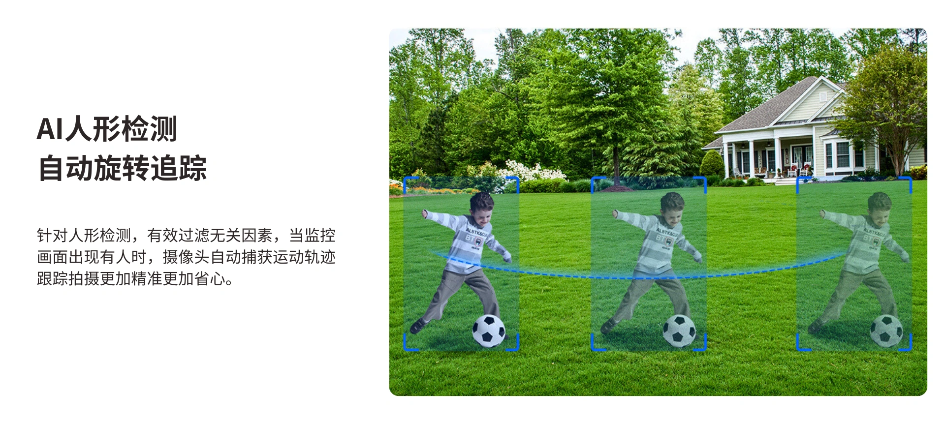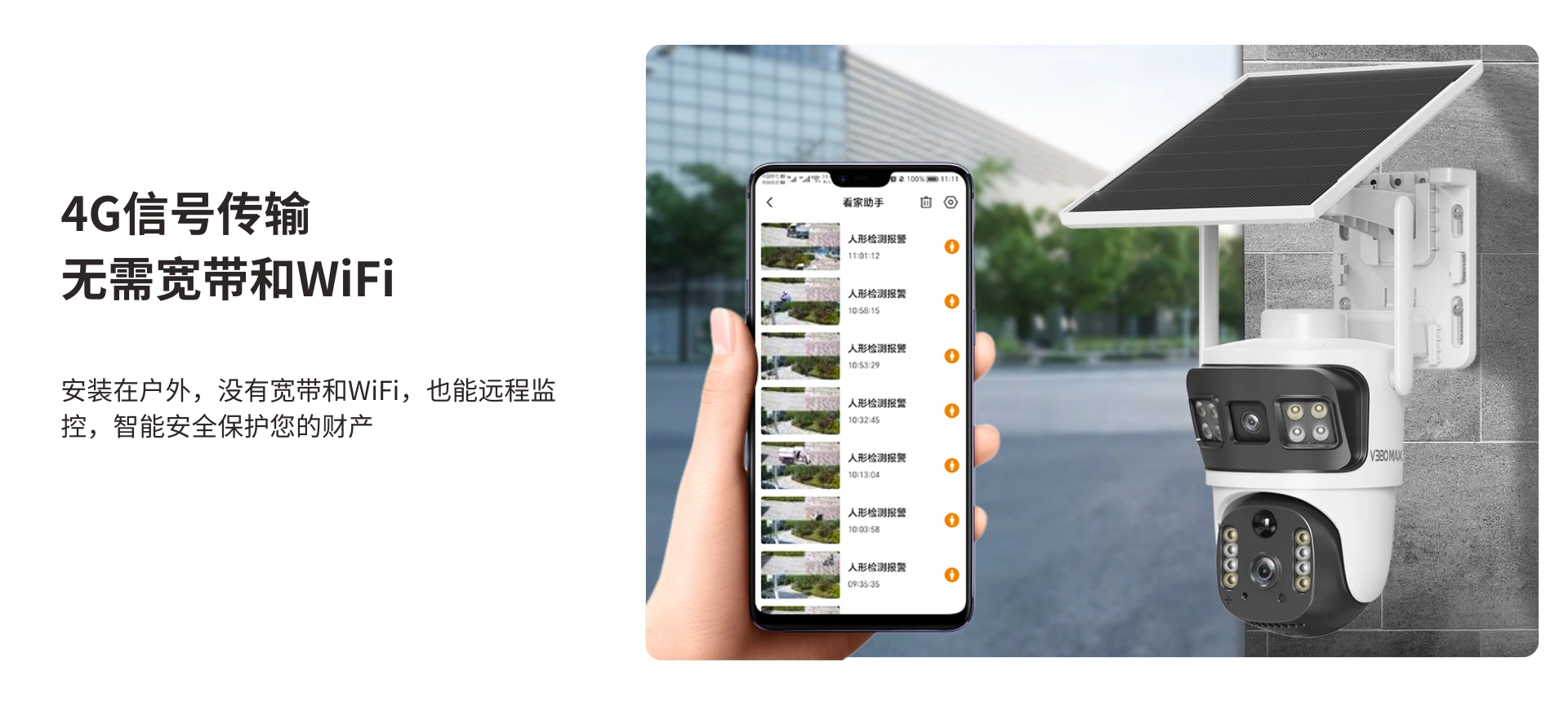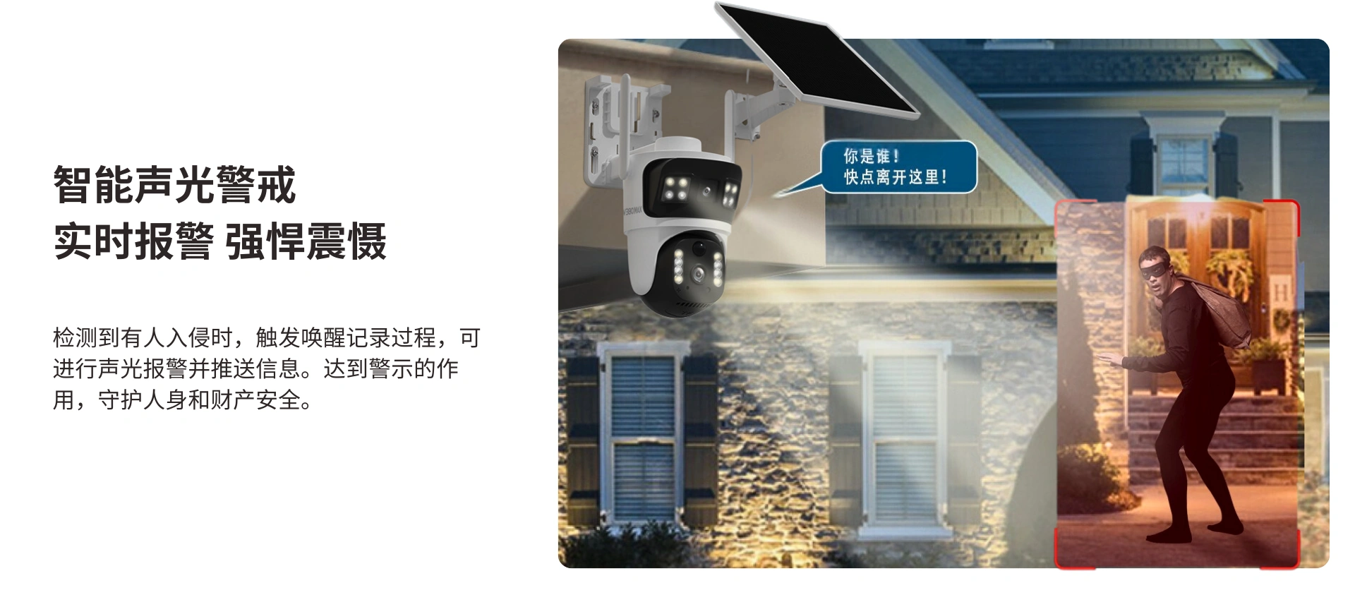 户外360°看护,10倍变焦,人形侦测。400W高清画质细腻,细节放大也能呈现足够精彩,一动一静,360°全景视野。