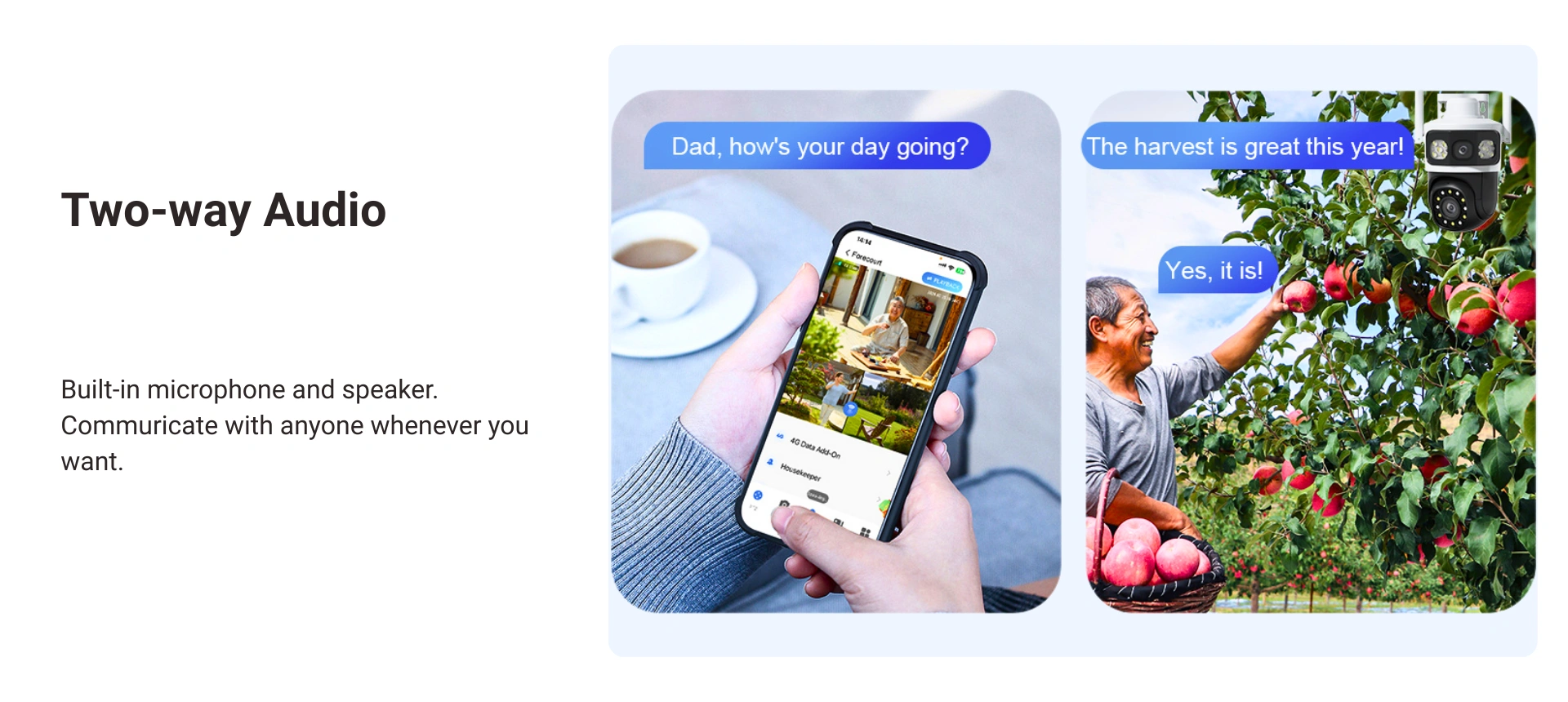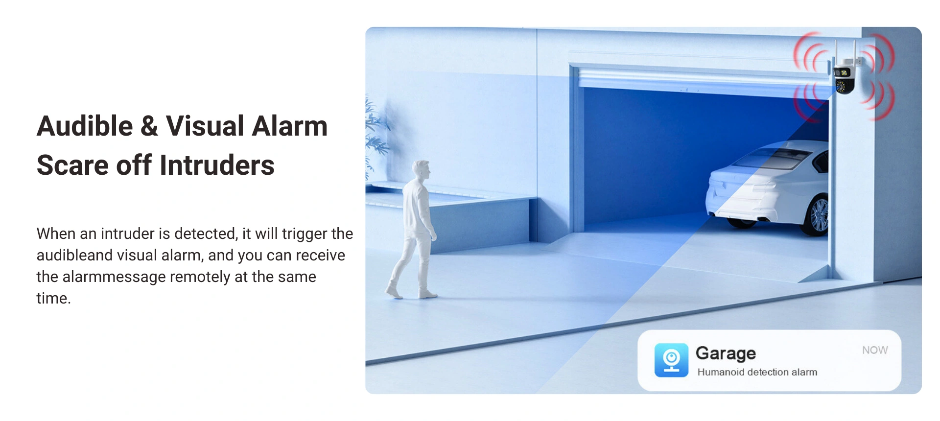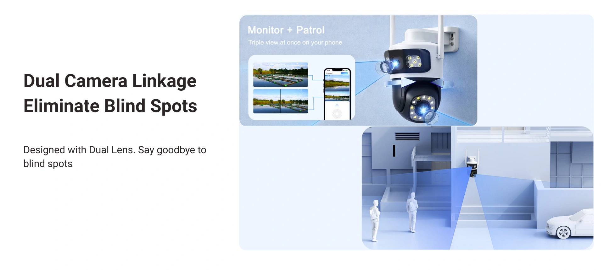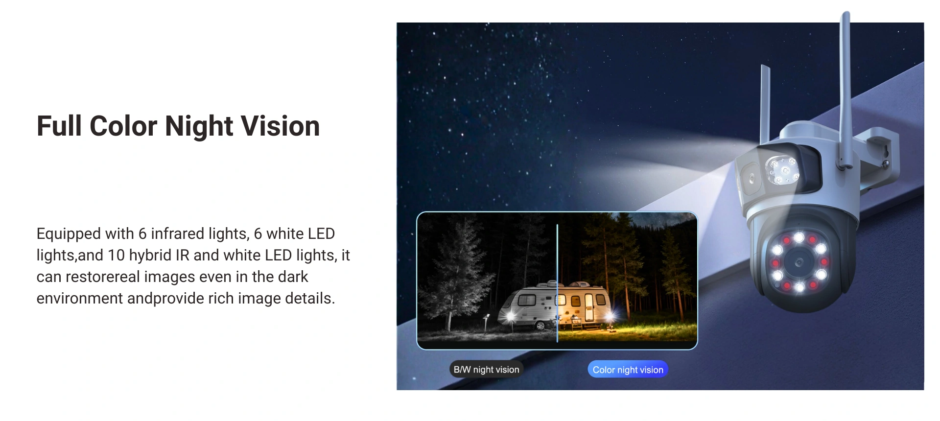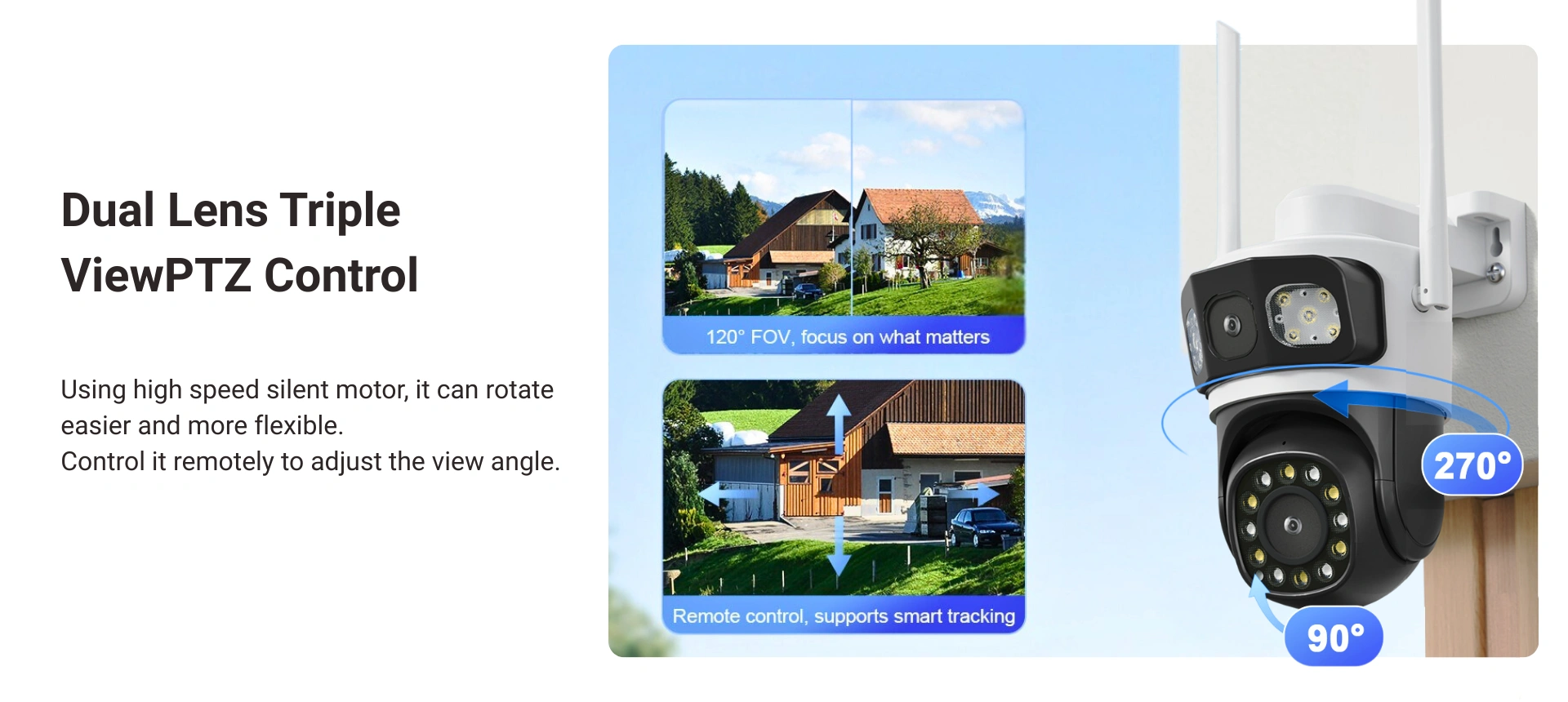 户外360°看护,10倍变焦,人形侦测。400W高清画质细腻,细节放大也能呈现足够精彩,一动一静,360°全景视野。