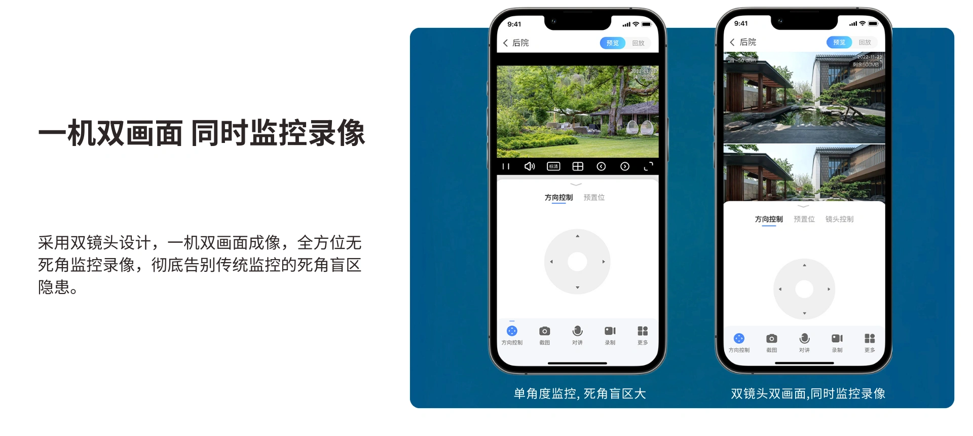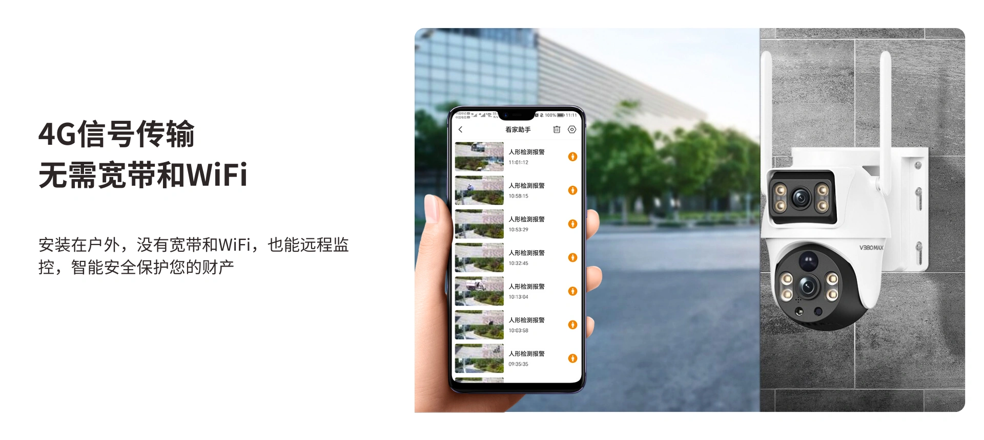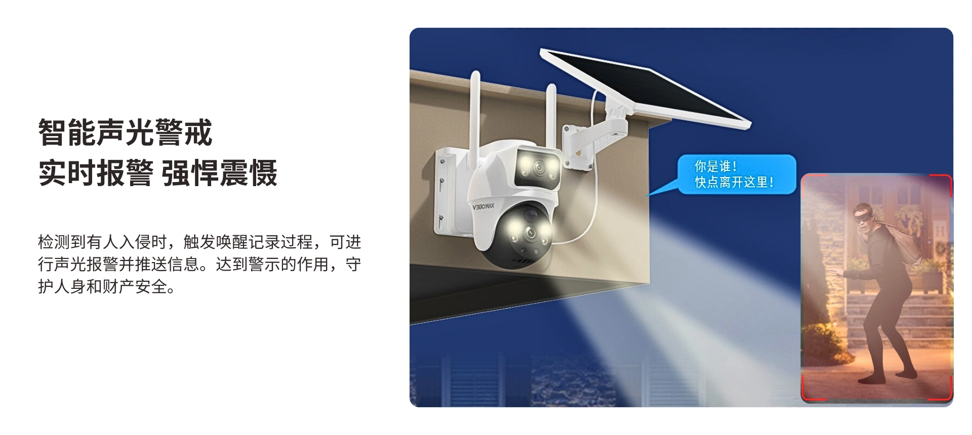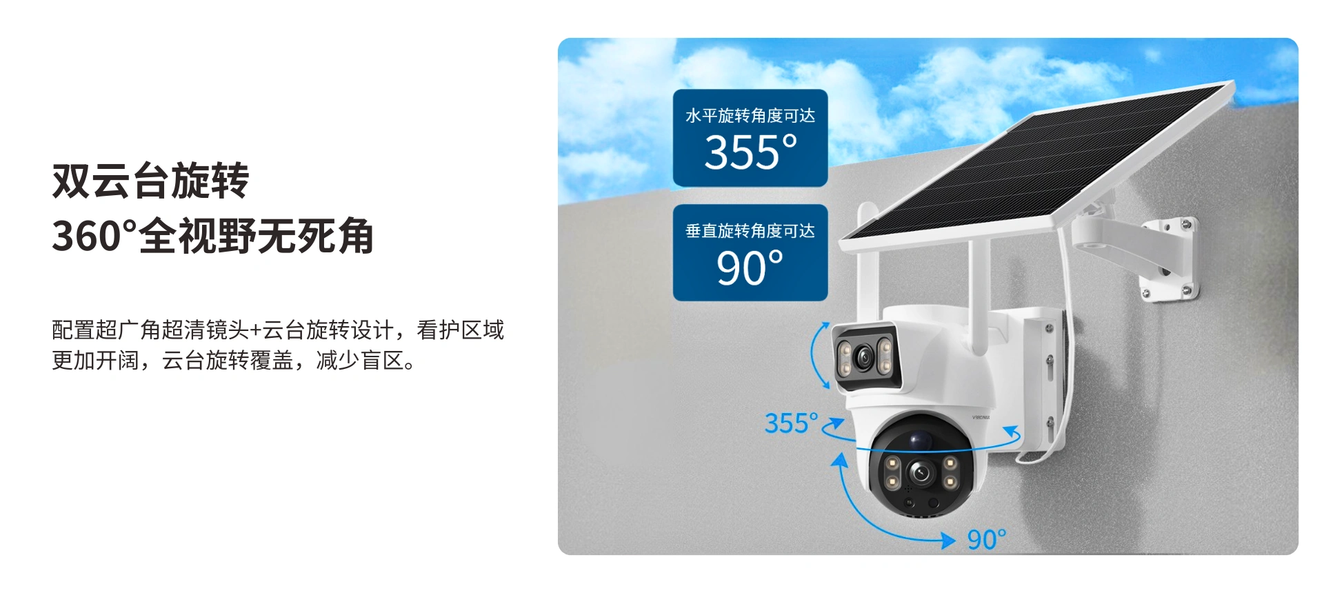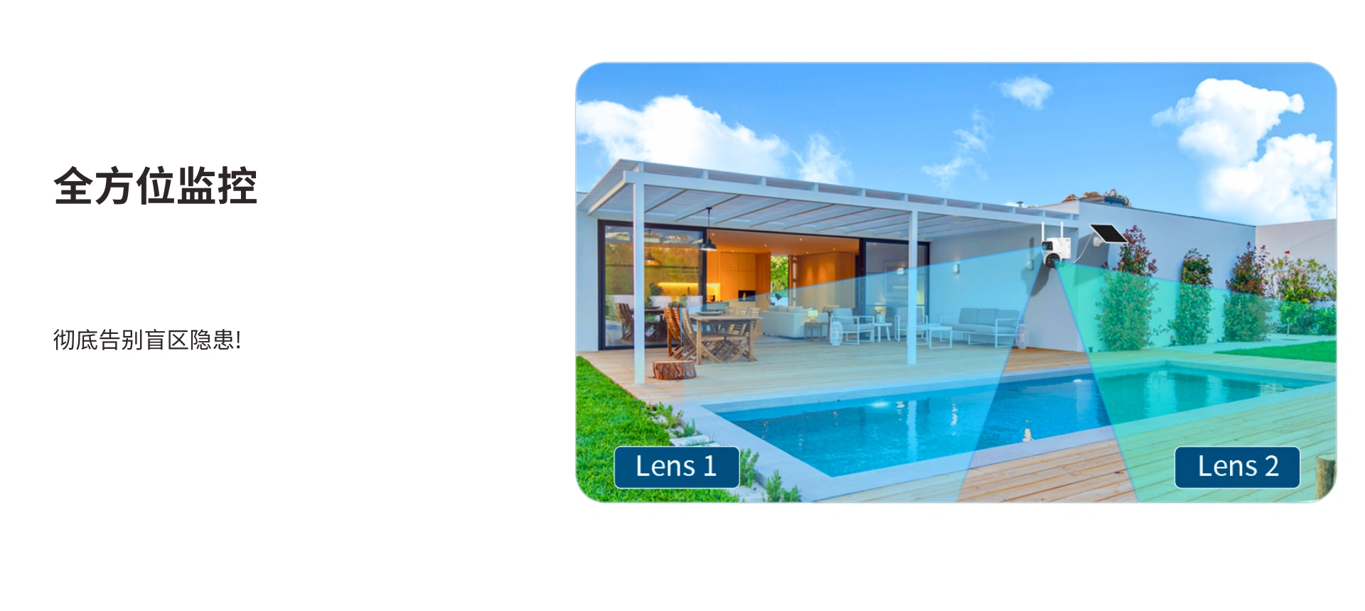 户外360°看护,10倍变焦,人形侦测。400W高清画质细腻,细节放大也能呈现足够精彩,一动一静,360°全景视野。