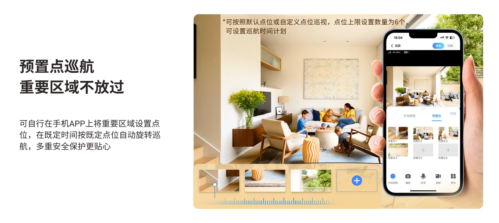 户外360°看护,10倍变焦,人形侦测。400W高清画质细腻,细节放大也能呈现足够精彩,一动一静,360°全景视野。